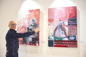 Atualmente, este autor está a tirar um curso de desenho com o artista internacional Rahul Onkon que possui o seu atelier nos Silos. “Estou a aprender novas ferramentas para o meu trabalho”, disse o pintor que usa tinta acrílica, stencil e colagens sobre as suas telas.