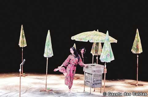 Já na praia, improvisada com chapéus de sol coloridos e areia, a personagem circula, de um lado para o outro, acompanhada de um papagaio, e dirige-se à plateia para apresentar a resposta aos problemas do dia-a-dia. Trata-se de um “kit de leveza”, que contém um catálogo com soluções para diversos cenários de stress. Por exemplo, nos momentos de taquicardia – “fanfarra de nervos” – o catálogo sugere que se aplique a técnica do “tchim-tchim”, o acto de brindar. Nesta cena, Mafalda Saloio fez questão de convidar quatro elementos do público, a quem foi entregue um copo, a subir ao palco e beber um pouco de champanhe. Um deles, Fernando Lopes, aproveitou para ir buscar a guitarra e protagonizou, em conjunto com Mafalda Saloio, o momento musical da peça. “Ser feliz é a minha forma de identidade”, ouvia-se no refrão.