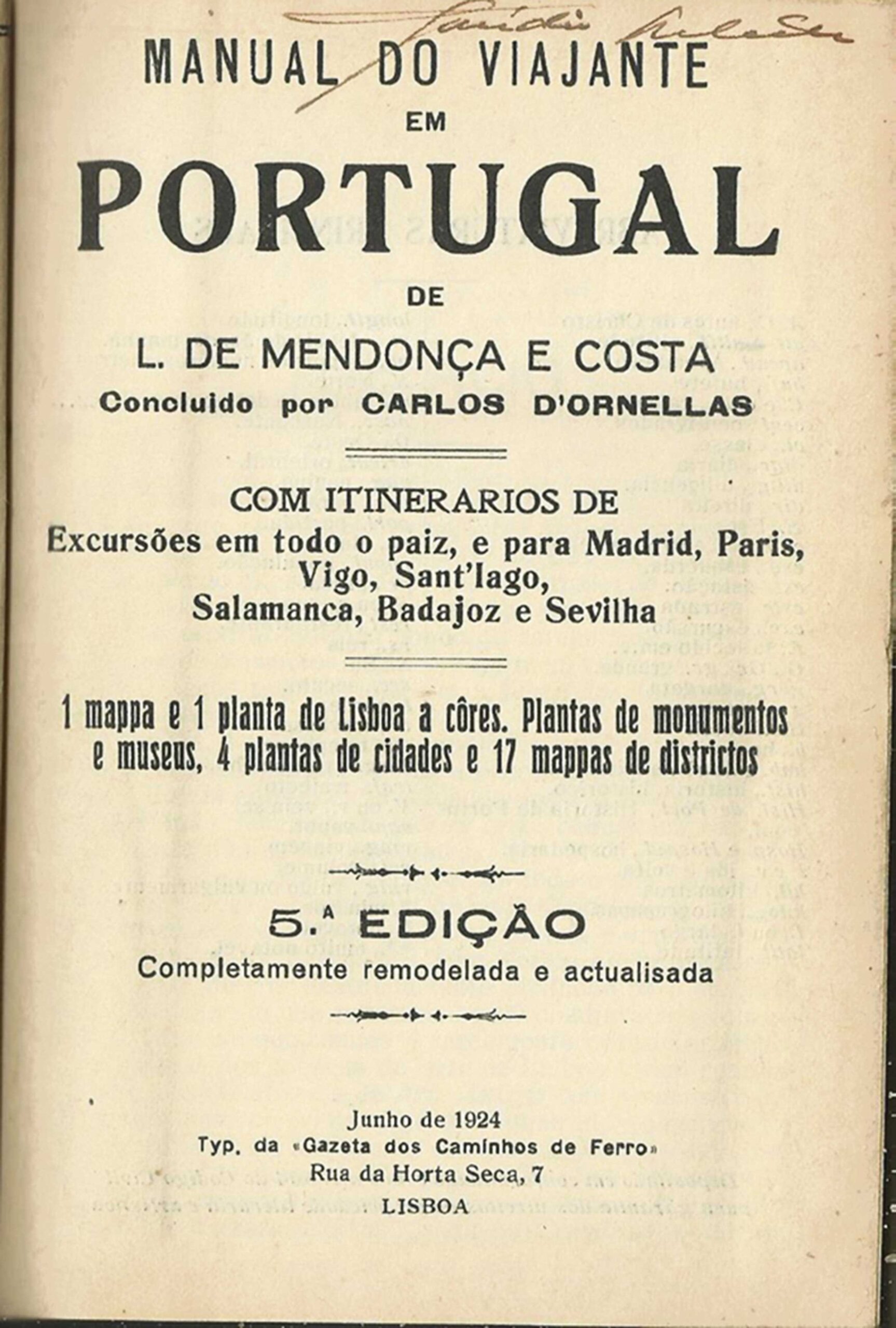 “Em frente do hospital o club, onde se dão, no verão, reuniões, bailes, concertos e outras diversões muito concorridas, e um vasto terreno, o Parque da Copa, com um grande lago, diversos jogos desportivos e longas ruas ensombradas por plátanos seculares. A igreja matriz, Nossa Senhora do Pópulo, construída em 1448 a 1502 e restaurada por D. João V, tem uma interessante torre. Ao norte, o Chafariz das Cinco Bicas, de construção imponente; e a Mata, aprazível passeio com terreno de corridas e outras diversões.