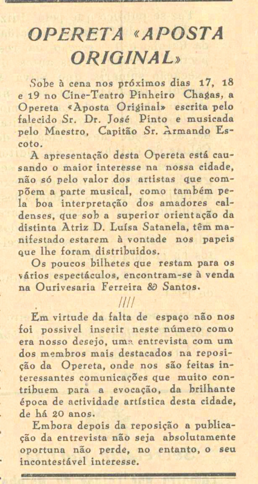 Assim”, estreada no Teatro Pinheiro Chagas, na Praça 5 de Outubro, em julho de 1951.