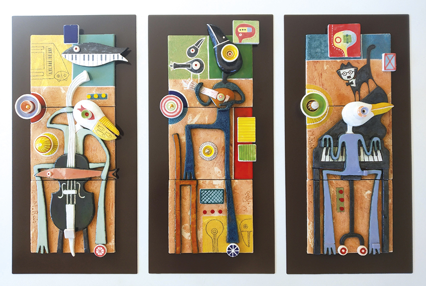 Mário Reis também faz obras de arte pública presentes na Nazaré, como os painéis contemporâneos que decoram o Ascensor da vila, na gare do Sítio e das muitas gaivotas cerâmicas que “habitam” no Forte de S. Miguel. Estas obras acabam por servir de montra e por trazer-lhe mais propostas de trabalho, sobretudo de estrangeiros. ■