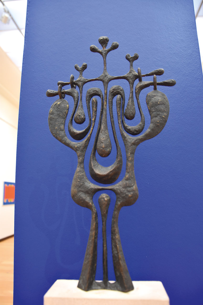 A mostra inicia-se com uma grande escultura em ferro de José Aurélio, designada “Flor”, colocada no exterior da sala de exposições temporárias.