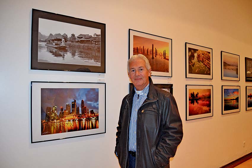 A perspectiva do seu trabalho é completamente diferente da do seu amigo, Luís Henriques. Se do outro lado há gente, este autor dedica-se à paisagem e aos reflexos. E tudo lhe serve: um lago ou uma mesa de hotel que dá a impressão que é um espelho de água. A presença humana é pontual como na imagem de um rio em Shangri-La (China) onde há uma mulher barqueira, tipicamente trajada e “que nos faz reconhecer o país de forma imediata”.