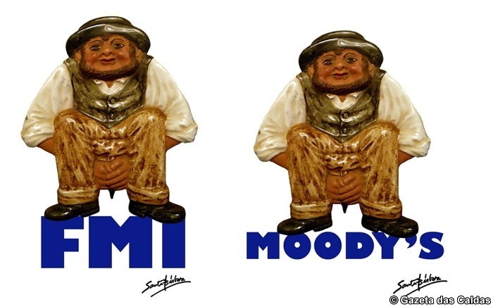 notícias das CaldasAs duas imagens representam uma montagem digital do artista José Santa-Bárbara que aproveitou um cinzeiro de Bordalo Pinheiro e o adaptou para realizar uma crítica mordaz a duas instituições que o seu criador hoje não hesitaria em tornar como seus alvos – a Moody’s e o FMI.