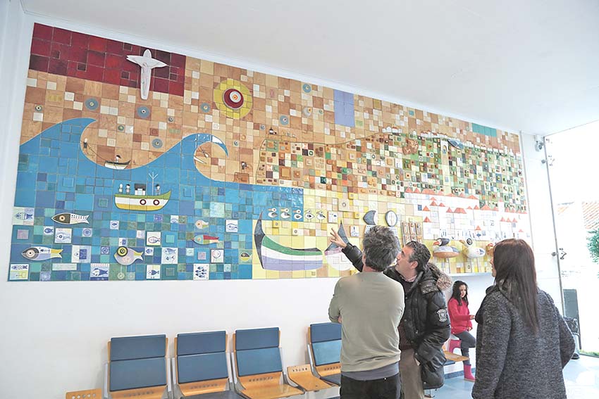 “A ideia é que as pessoas se aproximem e se apercebam de outros aspetos que aqui coloquei”, disse o autor. Nesta intervenção artística, Mário Reis quis homenagear Ferreira da Silva, artista desaparecido há um ano. “Ele foi um grande amigo, pessoal e da Nazaré, que é o autor do painel sobre o milagre de Nossa Senhora da Nazaré, instalado na gare superior do ascensor”, referiu o ceramista.
