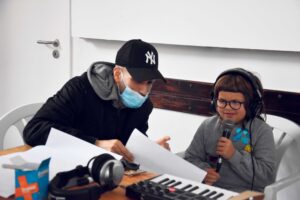 Foi com a ajuda dos DJ Elton Malta, André Tomás e Tiago Orato (os dois primeiros das Caldas e o último de Peniche) que algumas crianças, acompanhadas pelas mães, aprenderam os ritmos e a criar as quadras e rimas que serviram de base à construção de uma canção.