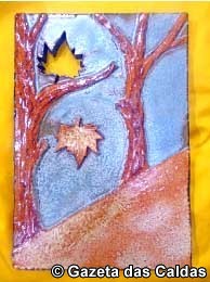 “Outono no Parque”, a peça da colecção da Gazeta das Caldas , é feita em grés e decorada com vidrados cerâmicos. O baixo-relevo é uma representação do Outono e os vários tons de bege e castanho remetem para a queda das folhas.