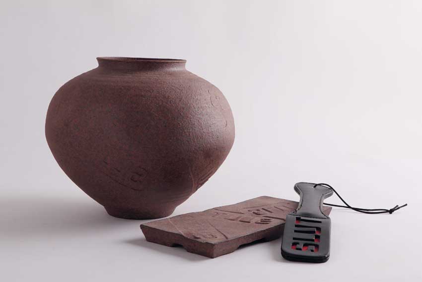 “Impact play” implica a demarcação da cerâmica através do impacto de objetos slap. Nas peças “Gag play” aplicaram-se nas obras gag balls.