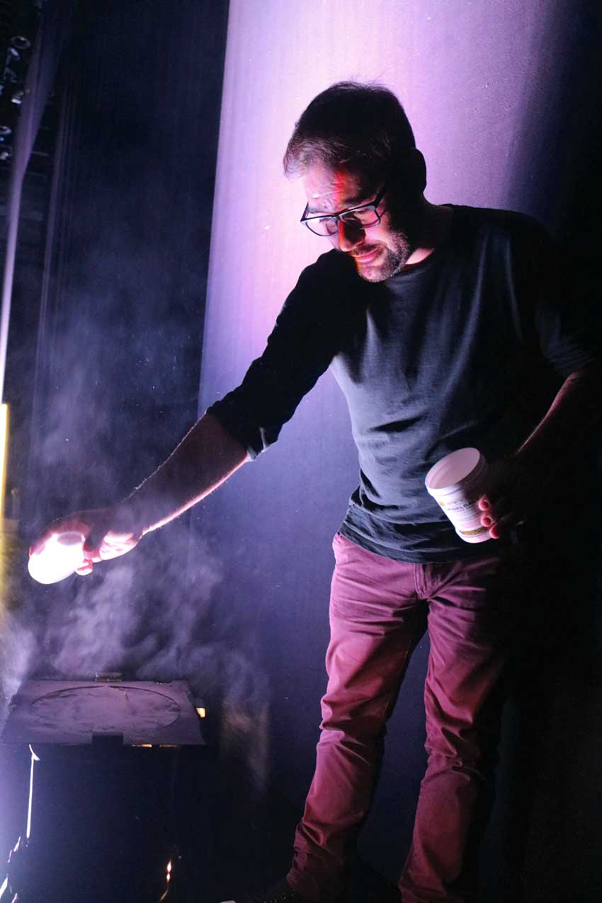 Ricardo Pimentel trabalha no CCC há cerca de dois anos. Controla perto de 50 projectores, naquilo que chama de uma montagem simples. Durante aquelas duas horas através da sua mesa controla a intensidade, a posição, a cor e as formas projectadas. “É um trabalho que exige concentração e sincronização, especialmente quando não conhecemos o espectáculo e temos de tentar perceber os momentos e os sinais e improvisar consoante aquilo que está a acontecer, prevendo o que vem depois”.
