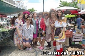 Quem passou pela praça na manhã de  25 de Maio não sabia que iria conhecer melhor as pessoas que vendem na Praça da Fruta.  Vestidas com cores garridas, a simular que eram também vendedeiras, estavam alunas da ETEO que realizaram um trabalho teatral dedicado em exclusivo àquele lugar simbólico das Caldas.