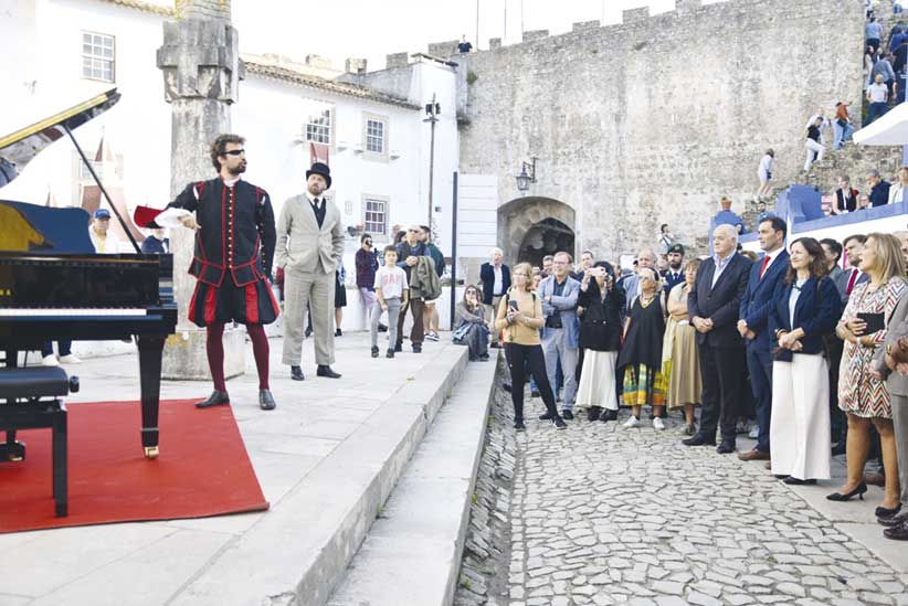 “A porta da vila torna-se a capa do livro que abrimos”. Eram assim dadas, na tarde de quinta-feira, 10 de outubro, as boas vindas à edição deste ano do Folio – Festival Internacional de Literatura de Óbidos. A comitiva, da qual fez parte a ministra da Cultura, Dalila Rodrigues, pararia alguns metros à frente para, junto ao Padrão Camoniano, ouvir o jovem obidense Olavo Mesquita ao piano. Rua fora a cultura continuou a cruzar-se com os visitantes. Os três artistas criadores Hugo Inácio, Dinis Binnema e Diogo Binnema, juntamente com 12 jovens talentos locais, alunos das escolas de Óbidos, deram “vida” à performance “palavras saltam das pedras”, interpretando trechos de Camões, Natália Correia, Zeca Afonso, Armando da Silva Carvalho e José Mário Branco.