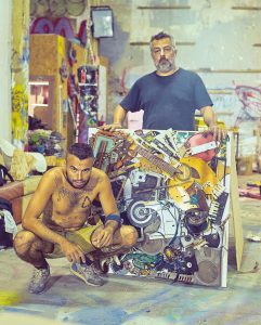 Bordalo II e Stereossauro junto ao trabalho que deu origem à capa de +351