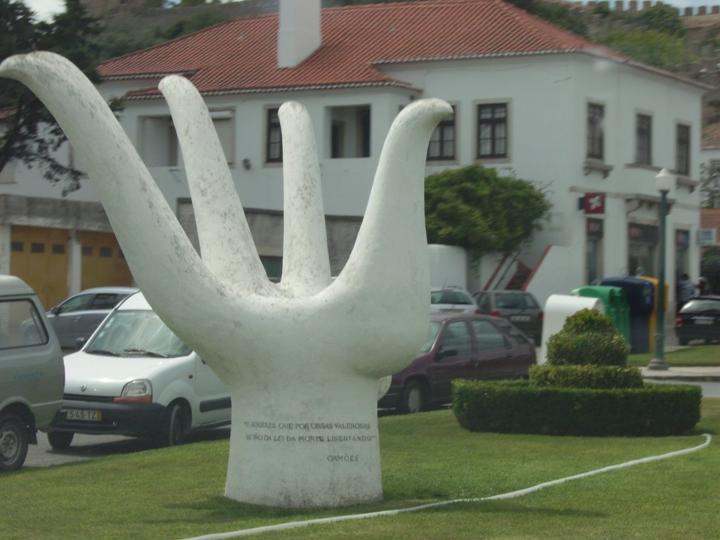 No final da apresentação foram colocadas algumas questões ao escultor. Uma delas, foi como reagiu o então presidente da Câmara Albino Castro e Sousa quando, em 1966, o escultor apresentou a Mão/Pomba (que se encontra junto à entrada de Óbidos) para monumento de homenagem aos soldados da guerra colonial. José Aurélio explicou que havia sido chamado pelo autarca, que lhe pediu uma proposta e que apresentou, em alternativa, uma escultura que homenageava, não só os que estavam em África, mas todos os que em Portugal sofriam com as perdas e as saudades daquela e de outras batalhas. Deste episódio da história de Óbidos ficou a Mão/Pomba que se encontra à entrada da vila e que tem inscrita a frase: “E aqueles que por obras valerosas se vão da lei da morte libertando”, da autoria de Luís de Camões e que mostra como, mesmo sob o Estado Novo, se podiam homenagear os portugueses através da arte.