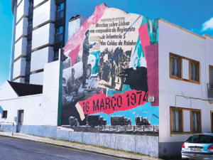 O 16 de Março e o 25 de Abril estão presentes em três murais. Na parede na Rua António Sérgio, está uma homenagem ao Golpe das Caldas, da autoria da dupla do projeto Ruído (Draw – Frederico Soares Campos e Alma – Rodrigo Guinea Gonçalves) e que faz parte de um conjunto de 14 “Murais de Liberdade”, inseridos nas celebrações do 50.º aniversário do 25 de Abril de 1974, criados durante em diferentes localidades do país.