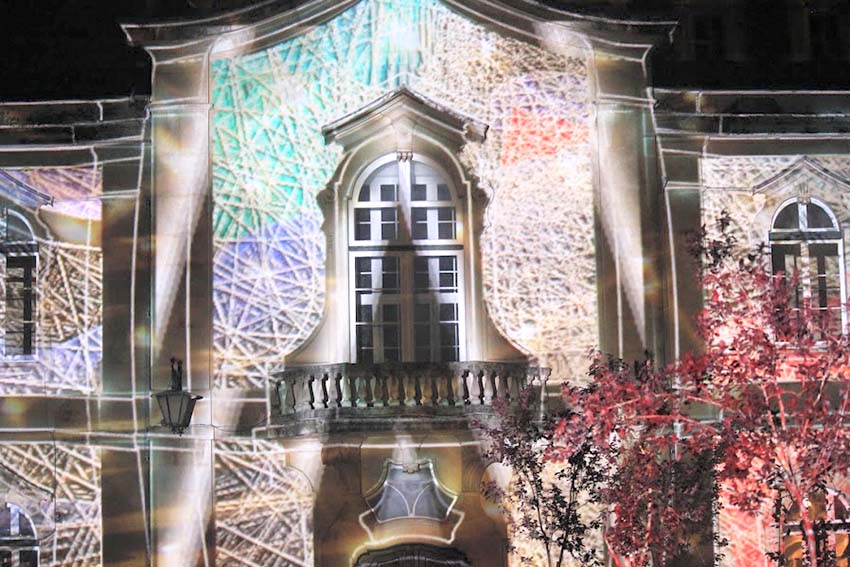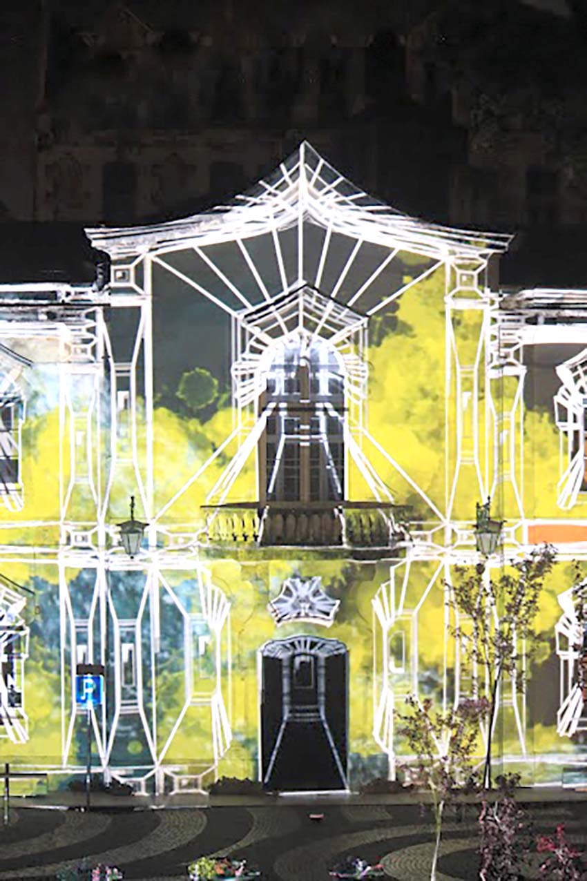 Durante duas horas, nove artistas de vários países usaram o Balneário do Hospital Termal como se fosse uma tela. Fizeram-no com um projector muito potente que iluminou com os jogos de luz que cada autor planeou no seu portátil as fachadas daquele edifício.