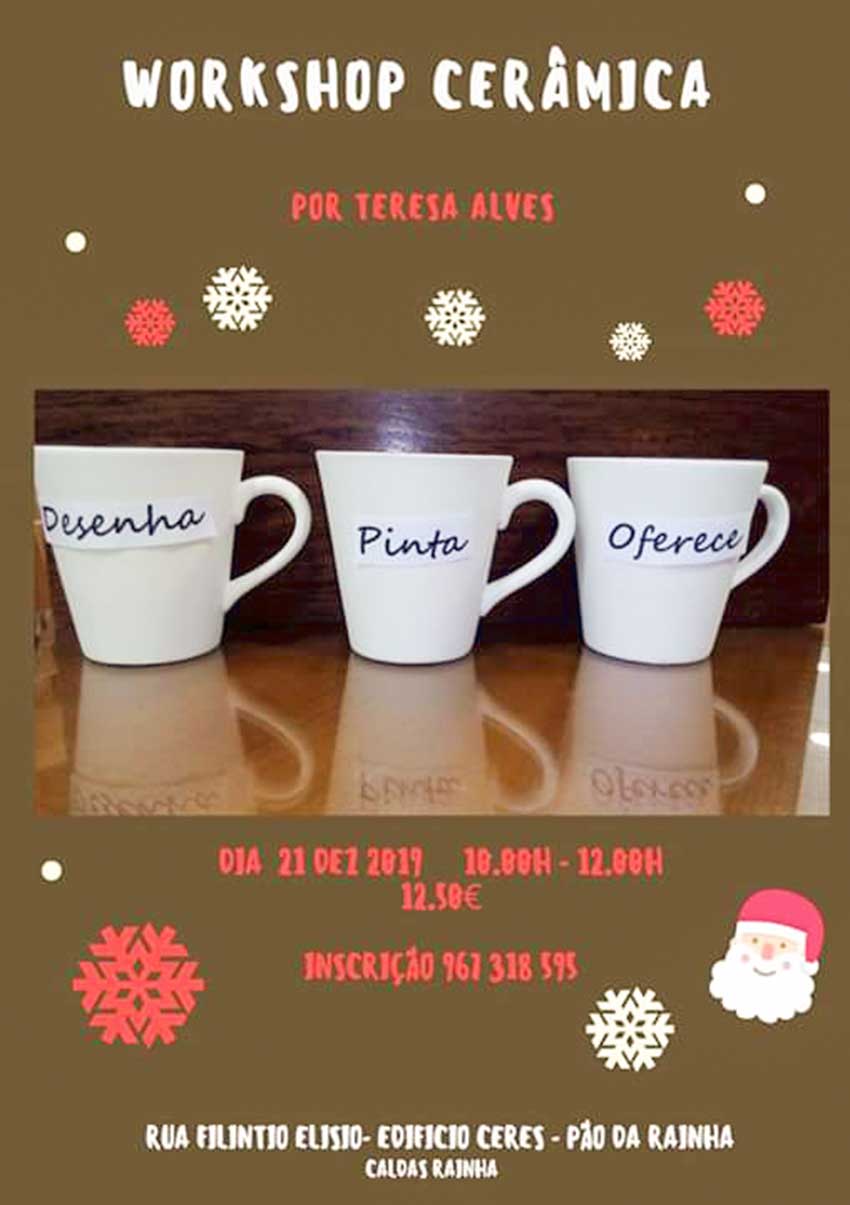A proposta é desenhar e pintar com materiais cerâmicos a caneca. O preço de participação é de 12,5 euros e as inscrições podem ser feitas através do telemv. 967318595.