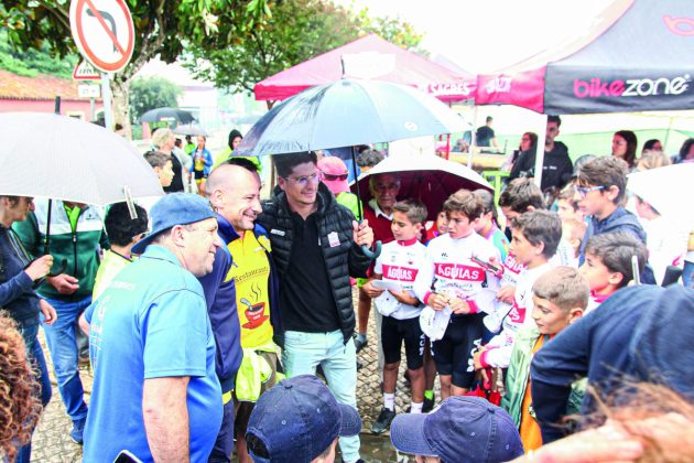 Nem a chuva que caiu com alguma força impediu que os jovens ciclistas, mas também os seus pais, os treinadores e tantas outras pessoas que ali se deslocaram para a participar ou apenas ver a prova e homenagear o novo ídolo nacional do ciclismo.