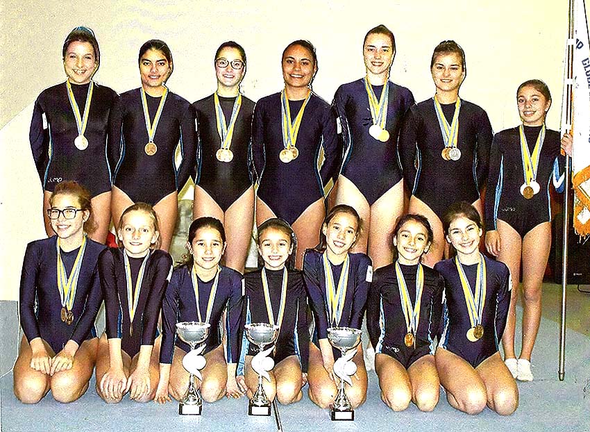 Estas ginastas também estiveram em grande plano na prova sincronizada, com o par, Madalena Martins e Inês Custódio a sagrarem-se campeãs distritais.