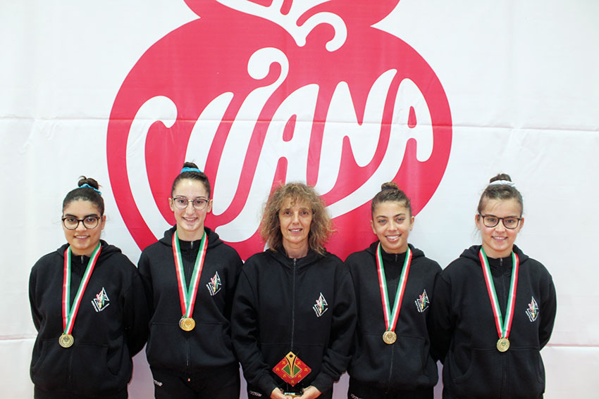 O clube caldense obteve ainda mais quatro medalhas de bronze. Dois desses resultados foram obtidos no escalão de iniciados femininos. Rita Laranjeira, Laura Mortinho, Patrícia Marques e Matilde Mesquita foram terceiras por equipas no trampolim. Matilde Mesquita deu lugar à ainda infantil Zoe Mendes no duplo mini-trampolim, que rendeu igualmente o terceiro lugar coletivo.