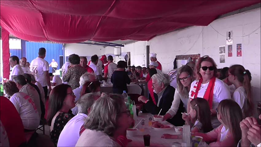 O almoço que contou com 250 pessoas entre as quais o Presidente da Junta de Freguesia Leonel Ribeiro realizou-se no bar do S.U.A. O menu apresentado foi: sopa da pedra, o tradicional porco no espeto e sardinha assada, acompanhado de vinho, cerveja e sumos. Como se adivinha a festa foi rija chegando ao rubro na hora da despedida e quando os visitantes usaram da palavra para agradecer o acolhimento dos adeptos alfeizerenses. Houve distribuição de troféus e prendas e a partilha de um grande bolo, tendo a tradicional vela sido apagada por Toni que na altura recebeu um quadro com a sua caricatura, pintado por António Simão um homem da terra com muito jeito para esta arte.
