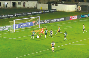 Ao minuto 66, o melhor lance, ou pelo menos aquele em que o Caldas mais perto esteve de chegar ao golo. A jogada começou em Edu, que se encheu de fé transportou a bola em progressão pela meia esquerda, a meio do caminho fez uma tabela com Rafa Pinto, que o embalou até à grande área e, já na área de rigor, o central aplicou um remate. No entanto, o guarda-redes João Gonçalo fez bem a mancha e defendeu com o pé. Com o Caldas embalado no ataque, o lance podia ter mudado o rumo do jogo. ■