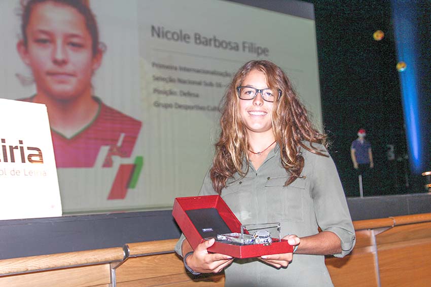 De seguida subiu ao palco Nicole Filipe, jogadora do A-dos-Francos que na época passada teve a primeira internacionalização por Portugal, nas Sub16. Uma distinção marcante, como foi a própria presença na selecção. “Aprendi muito com isso e fiquei muito feliz por receber este prémio”. Nicole realça que a chamada foi tão inesperada como incrível.