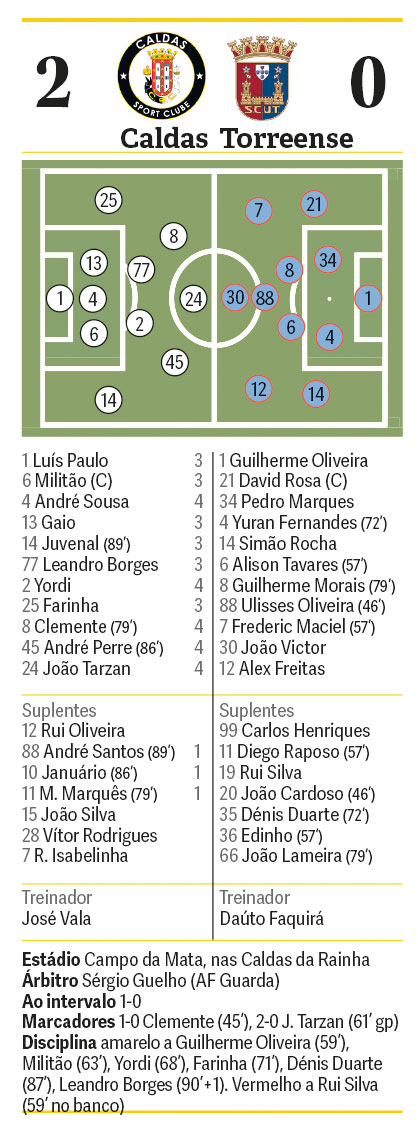 E até final até foi o Caldas, com uma exibição convincente, que esteve mais perto de marcar do que de sofrer, com remates de André Perre e Clemente. ■
