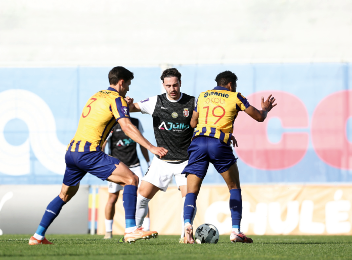 Golo que deu vantagem à turma de Alcântara chegou através de um lance de bola parada. Um canto à direita do ataque, no qual Nicolas Souza conseguiu, entre um chacho de jogadores, desviar de cabeça e bater Duarte Almeida pela primeira vez.