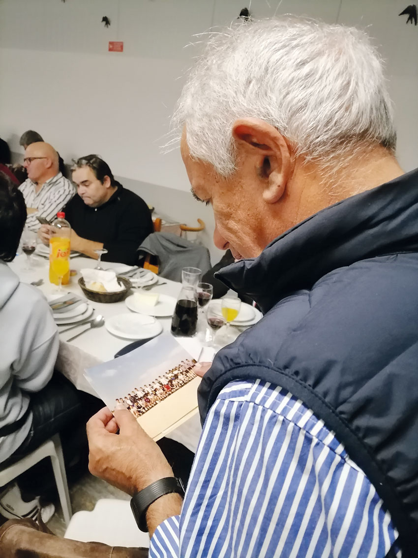 Paulo é o mentor da página de Facebook FCC – Futebol Clube das Caldas, que surgiu em agosto deste ano. “Foi começada no dia em que me apercebi que o Kikas (Pedra Morgado) morreu, e tentei pesquisar sobre ele, que tinha sido meu colega no FCC e reparei que não havia nada sobre o clube e impulsivamente comecei a fazer a página e tem que crescido com o contributo de todos”, contou, esclarecendo que esta foi a primeira página nas redes que criou. Como reside em Inglaterra, pediu ajuda a Filipe Camacho para organizarem um convívio. E assim foi. Na primeira edição juntaram perto de 80 pessoas, de diferentes gerações, entre os anos 50 e 90 do século passado, a conviver. Pela sala vemos camisolas do clube, galhardetes e fotografias antigas e ouvimos histórias. Muitas histórias deste clube que foi uma referência no seu tempo.