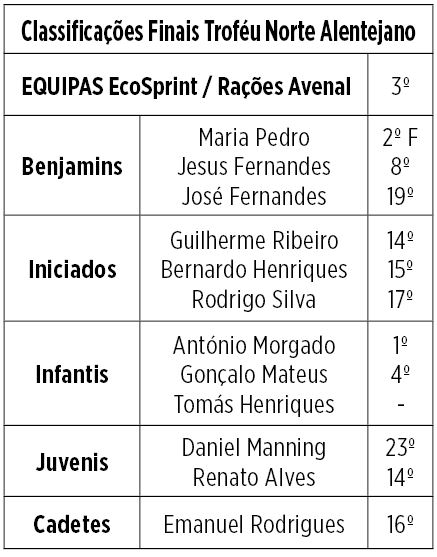 Cumpridas as 5 provas e com mais um dia de excelentes prestações a EcoSprint / Rações Avenal conquistou as seguintes classificações finais em mais uma edição do Troféu Norte Alentejano.