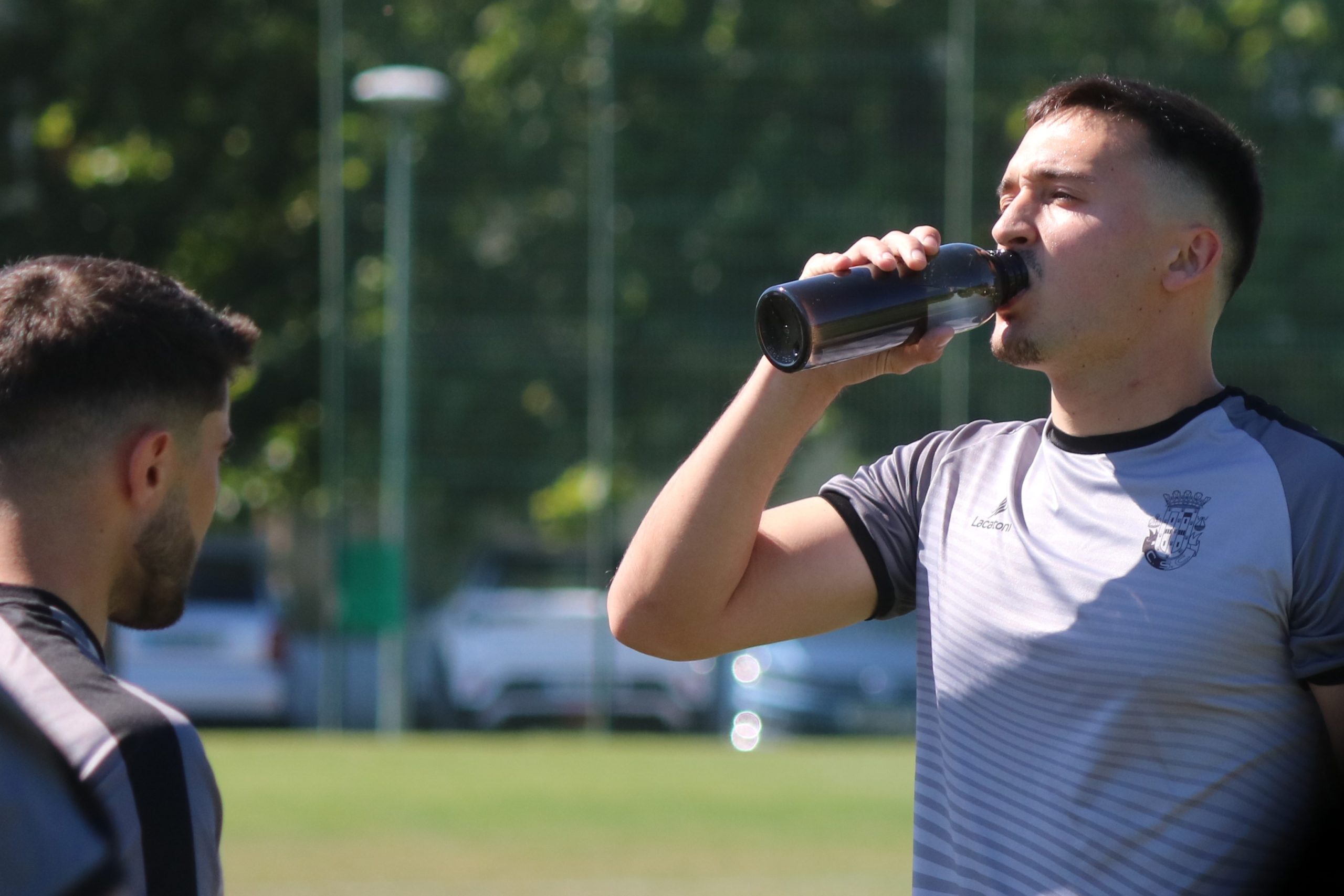 Da equipa B sobem David Santos e Júlio, que se apresentam como opções válidas dentro do plantel, mas também Ivo, que já treinava com a equipa várias vezes. “Era a tal situação de abdicar de um ponta, porque tínhamos um em casa, e ter mais um extremo. A única probabilidade de ainda irmos buscar alguém, é um central, porque não estávamos a contar com a saída do Sousa”, disse. O plantel tem 27 jogadores, mais dois do que no último ano. “Temos um terceiro guarda-redes, que não tínhamos. Se vier um central serão 28, um plantel grande, mas com muitos jovens com menos de 23 anos”, com possibilidade de jogar pela equipa B. A contratação de um central será decidida depois de alguns treinos e jogos “para perceber as necessidades, porque temos muitas possibilidades dentro do plantel, ainda não sei se vamos jogar com uma estrutura a três ou a quatro. Se jogarmos com dois centrais, não devemos ir buscar nenhum, se chegarmos à conclusão de que ficamos mais estabilizados com três, provavelmente teremos que ir buscar”, refere. “O Caldas pelo segundo ano consecutivo ganhou o prémio Puro Futebol, pelo ambiente que os adeptos criam no Campo da Mata. Os jogadores e treinadores dizem que jogar nas Caldas é diferente e isso é pelo público, pela forma de estar nas bancadas e antes e depois dos jogos”, realça, apelando a que estejam com a equipa mesmo nos momentos difíceis. ■