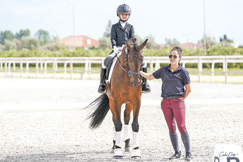 A cavaleira Áurea Sábio estreou a nova montada “Jazz cc” na categoria “Childrens”, na semana passada, na estreia no campeonato dressage nacional, que decorreu no âmbito da ExpoÉgua, na Golegã. A caldense, de apenas 11 anos, obteve dois excelentes resultados: foi 1ª classificada na prova preliminar B, com 69,6 pontos, no sábado; e 2ª classificada na prova Children Team, no dia seguinte, com 66 pontos. ■