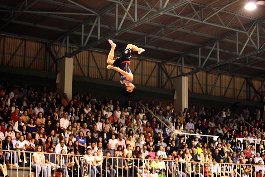 Impressionante foi também a prestação dos vários campeões de duplo-mini trampolim, cama elástica e de tumbling que arrancaram muitos “uau” e muitos aplausos ao público que voltou a lotar a capacidade do Pavilhão Rainha D. Leonor.