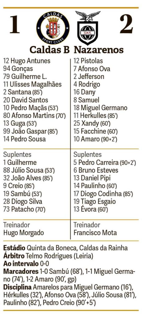 InícioDesportoNazarenos vence nas Caldas com reviravolta