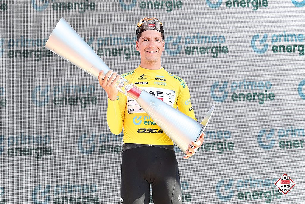 Sim, com o Tadej é um bocadinho mais difícil treinar com ele porque ele anda tanto que é um bocadinho difícil acompanhar. Mas é uma honra também correr com ele, é uma pessoa cinco estrelas e também tem muita classe, é uma boa pessoa e sabemos que vamos fazer parte da história quando estamos a correr com ele… e parte da vitória, o que é sempre especial.