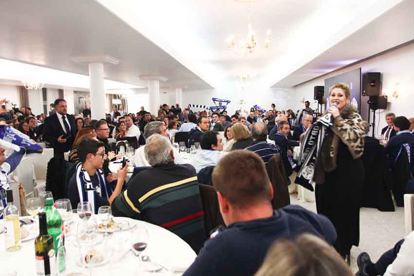 Numa noite animada, não faltaram os cânticos que demonstram a gratidão dos adeptos portistas ao seu presidente, o que lhe motivou um comentário especial durante o discurso. “Ao fim de 36 anos na presidência consigo sentir-me grato com o que vivi desde que cheguei às Caldas da Rainha, levo todos no coração”. Pinto da Costa mencionou ainda o esforço que a cantora caldense Rebeca fez para poder estar na festa portista nas Caldas, ela que tinha estado naquele dia, justamente, no Porto. Pinto da Costa observou com agrado a presença de muitas crianças entre os portistas e deixou um nota curiosa. “Disseram-me no clube que esta data podia não ser a melhor, porque coincidia com a quinta jornada da Liga dos Campeões e o ambiente podia não ser o melhor, mas tinha a certeza de que estaríamos bem classificados, e que se não estivéssemos os portistas não deixariam de estar presentes”.