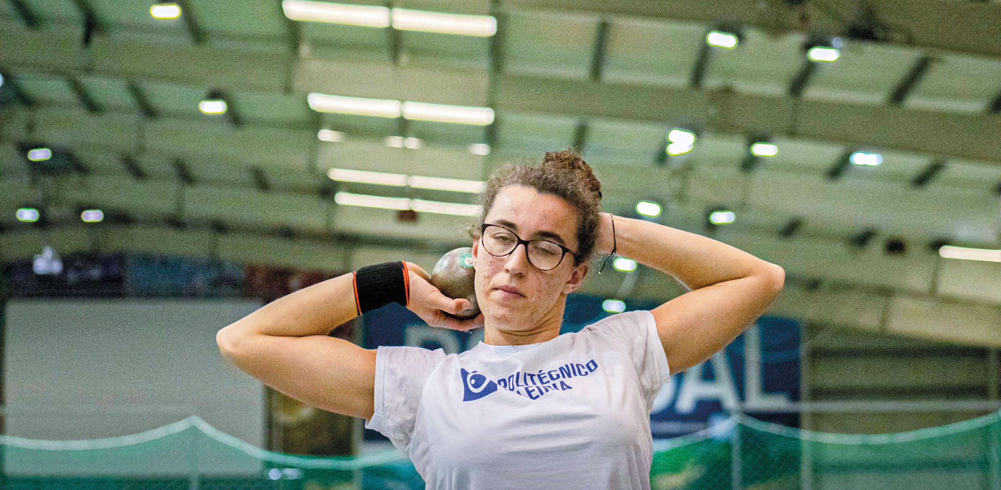 Inês Carreira fechou o pódio do lançamento do Peso com a marca de 12,94 metrosA equipa do Politécnico de Leiria foi constituída por 18 estudantes-atletas e conquistou um total de seis medalhas (duas de ouro, uma de prata e três de bronze), na prova realizada em Pombal a 6 e 7 de março.