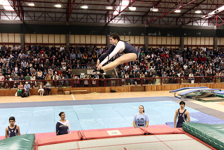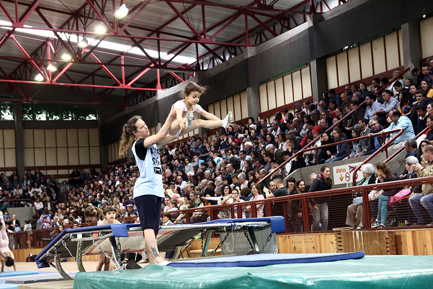 Depois o espectáculo foi evoluindo, com os esquemas de solo a alternar com os saltos no trampolim e no duplo-mini. Num dos esquemas, na classe 6+, também os pais foram convidados a actuar com os seus petizes. E houve dois momentos de ballet, protagonizados pelas três classes, incluindo a de ballet fitness.