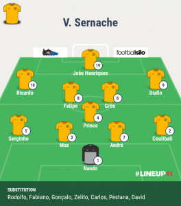 A partida é, contudo, vital para as aspirações do Sernache, que com sete pontos de atraso para a linha de água pode, com outro resultado que não a vitória, ficar com a manutenção seriamente comprometida. A equipa da casa vem de dois empates, a melhor sequência de resultados que conseguiu esta época. Nesta fase só venceu a Naval. Tem o pior ataque, com oito golos, os mesmos da Naval, e a segunda defesa mais batida, com 12 golos sofridos.