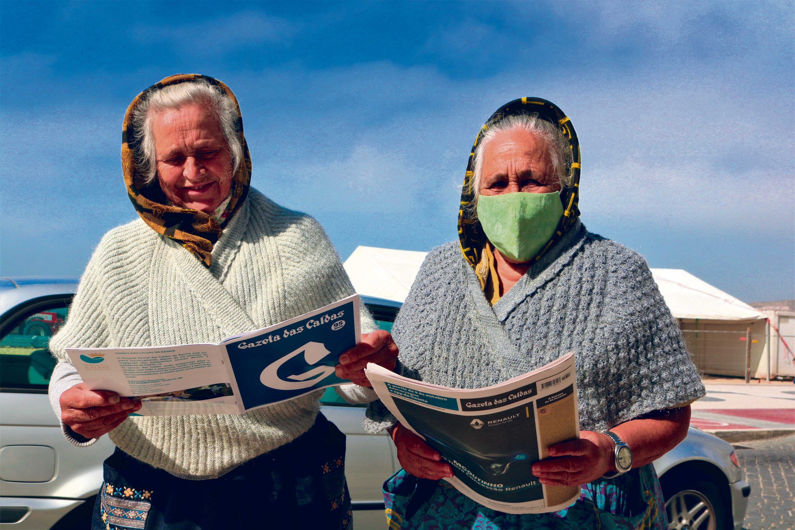 A distribuição chegou à Nazaré. Na fotografia duas nazarenas aproveitam a oferta para ficarem a par das novidades da região | DR