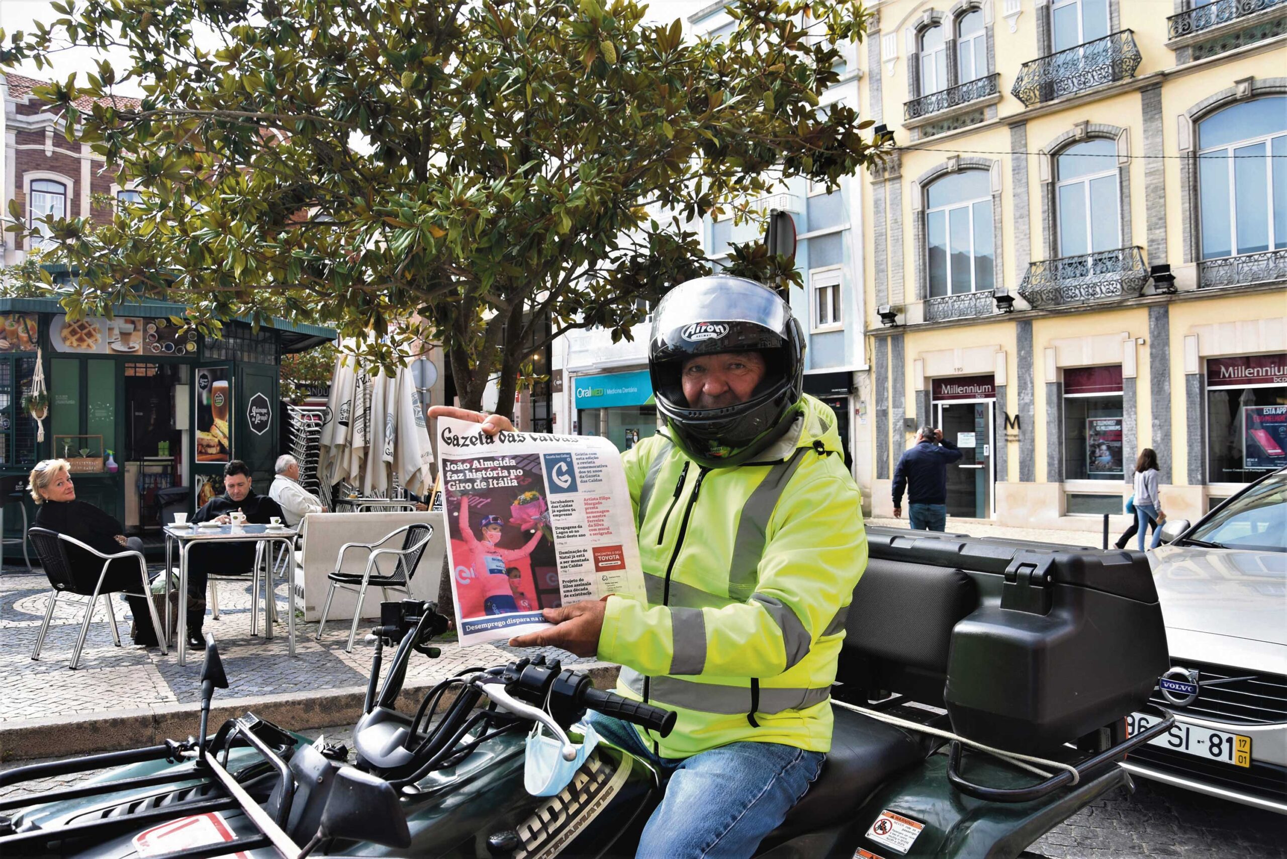 O condutor de uma moto4 aproveitou a paragem na subida para a Praça da Fruta para receber o seu jornal | DR