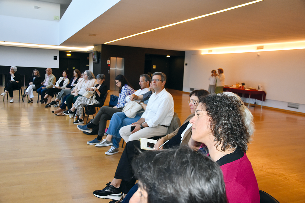Em roda, no foyer do CCC, responsáveis por ranchos, coros, bandas filarmónicas e muitas escolas de arte do concelho, escutaram Carla Cardoso (ESAD.CR) com a intervenção “Comunidades que decidem, instituições que escutam”. É uma das mediadoras de iniciativas como o Festival Iminente que surgiu como atividade participativa em bairros considerados problemáticos de Lisboa.