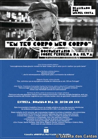 No próximo domingo, 12 de Agosto, pelas 21h30, será apresentado no CCC um documentário sobre o ceramista Ferreira da Silva, realizado pelo cineasta caldense Miguel Costa.
