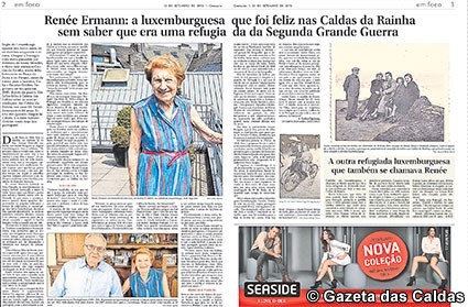 A história de Renée Ermann, a luxemburguesa que viveu em criança nas Caldas da Rainha para fugir ao Holocausto e que o nosso jornal deu a conhecer na edição de 24/07/2015, foi transcrita no Contacto, um dos jornais portugueses com maior tiragem no estrangeiro.