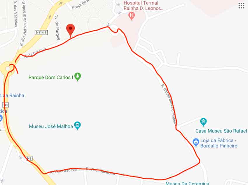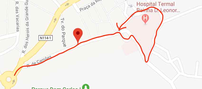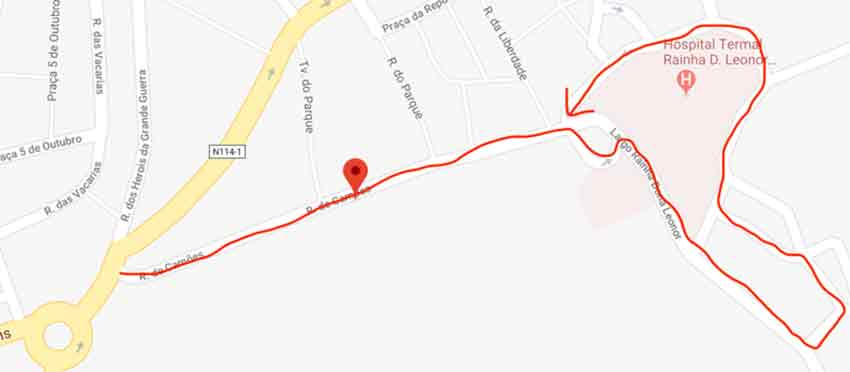 No Mapa 4 encontra-se um trajeto não tão mau, com 0,500Km, no entanto é péssimo se comparado com os 5m que se poderiam percorrer no caso de ser possível uma inversão de marcha junto ao hospital termal.