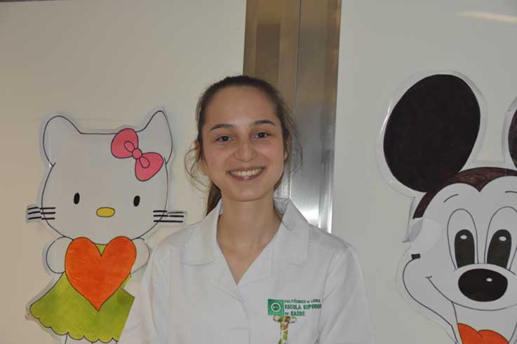Desde o primeiro ano que os alunos do IPL fazem estágios e Carolina Sousa já esteve nos hospitais de Tomar, Leiria e Caldas da Rainha, onde passou por várias valências. Começou por Medicina, depois Ortopedia e Cirurgia e, este ano, está a estagiar nas especialidades de Pediatria, Obstetrícia, Psiquiatria e também ao nível dos cuidados primários prestados no Centro de Saúde.