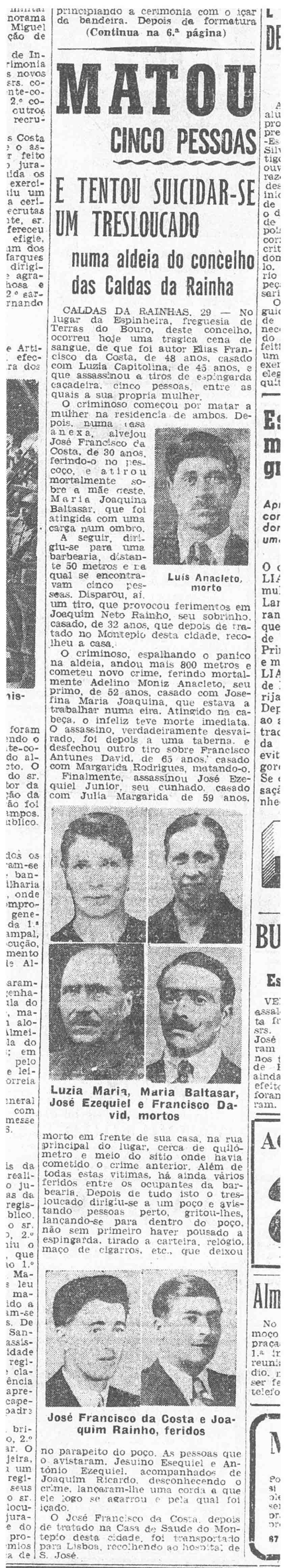 Gazeta das Caldas relata o que aconteceu naquele fatídico dia de 29 de Julho de 1956, divulgando o processo do recluso Elias Francisco arquivado na Cadeia Penitenciária de Lisboa. E conversou com a psiquiatra Paula Carvalho, que procura explicar o que terá levado um homem a cometer homicídios desta natureza.