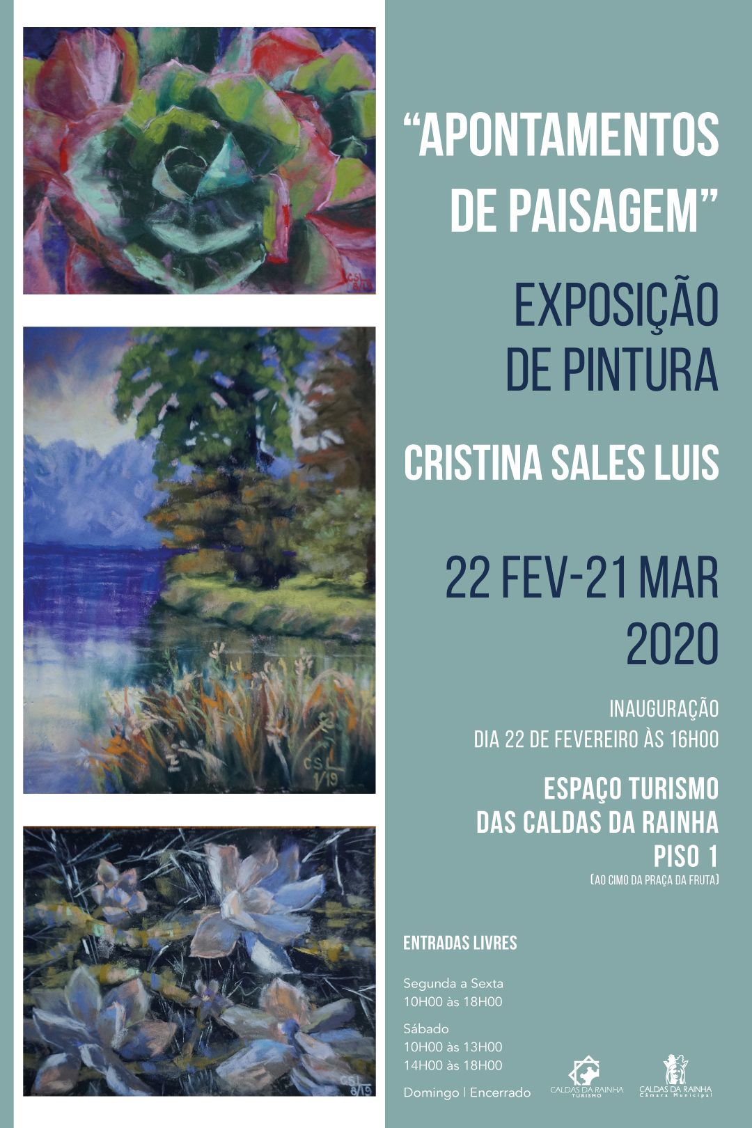 A exposição “Apontamentos de Paisagem”, que reúne pinturas de Cristina Sales Luís, será inaugurada a 22 de Fevereiro, às 16h00, na galeria do Espaço Turismo das Caldas da Rainha (ao cimo da Praça da Fruta).