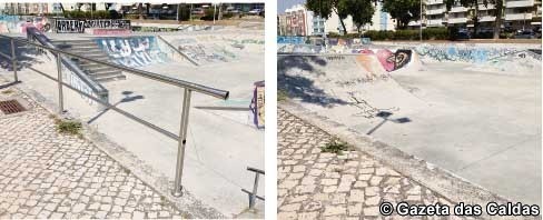 Os varadins de protecção já existiram em redor do Skate Parque, mas sobra apenas um. Os outros desapareceram, o que constitui um perigo para crianças e adultos. Uma situação que já dura há mais de um ano, apesar de, entretanto, ali se terem realizado vários eventos como foi o caso do Caldas Punk Fest.