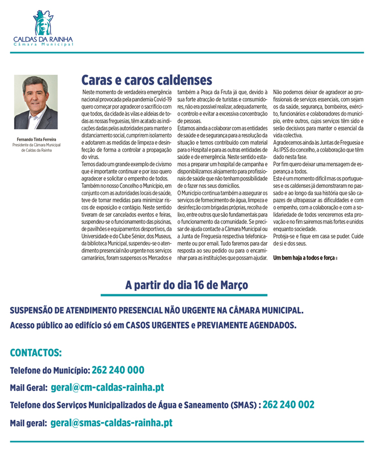 Divulgação Institucional #façaasuaparte Por CarlosReis - 27 de Março, 2020 0 1348 https://gazetadascaldas.pt/wp-content/uploads/2020/03/CMCR-1-1.mp4 - publicidade - 1 de 4 - publicidade -